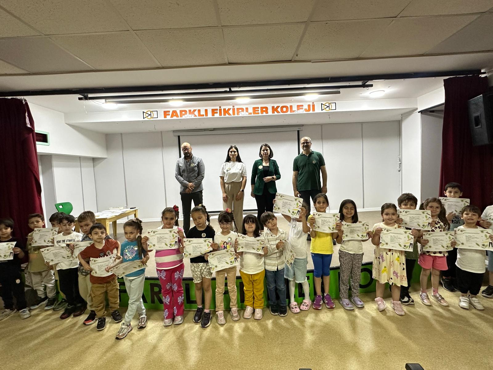 “Bir Günü Değiştiren Küçük Kahramanlar” temasıyla Farklı Fikirler Koleji’nde düzenlediğimiz etkinlikte, çocukları doğa dostu alışkanlıklarla tanıştırdık. Her bir öğrenci, çevreyi korumaya yönelik somut davranışları temsil eden özel unvanlarla ödüllendirildi: