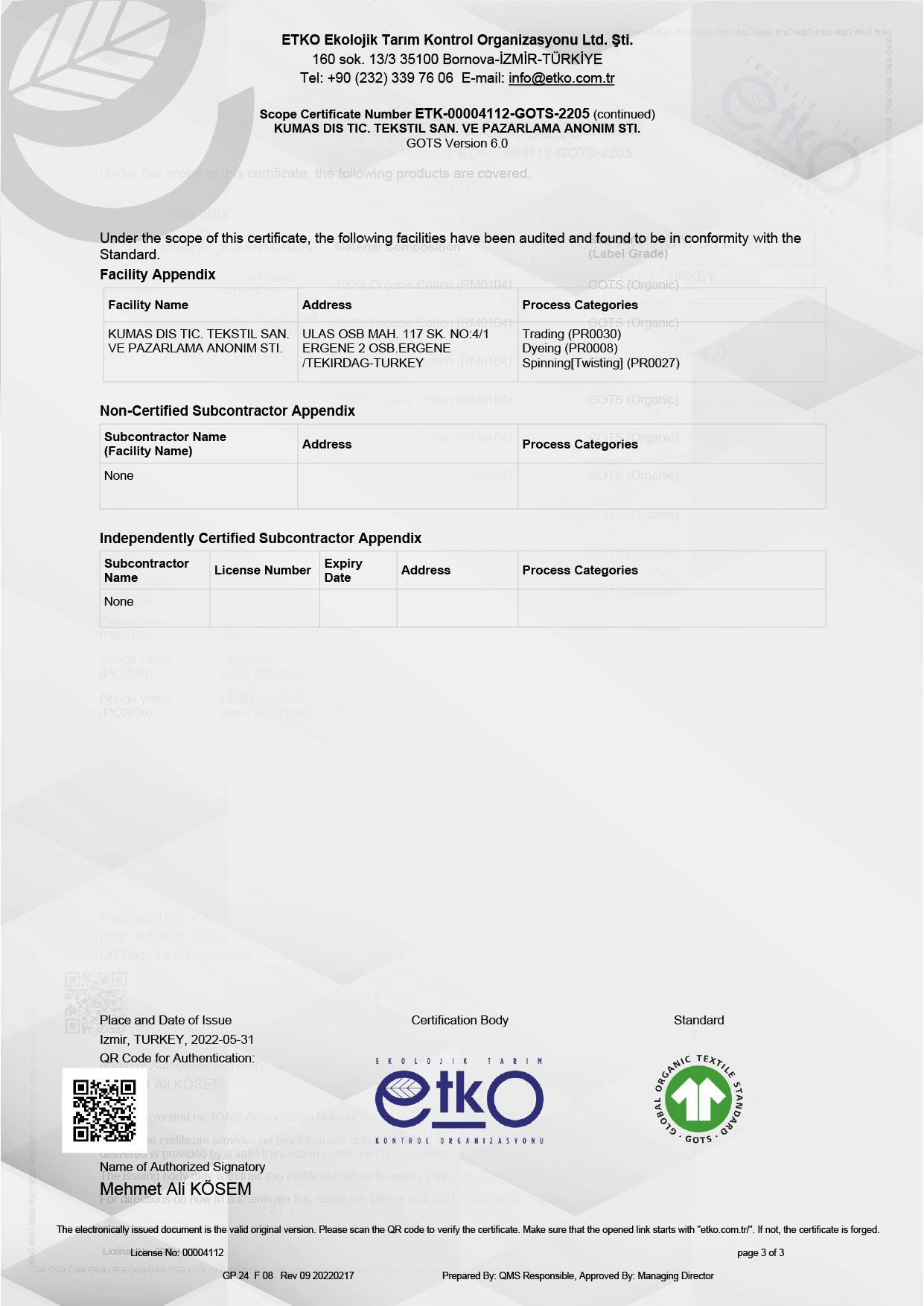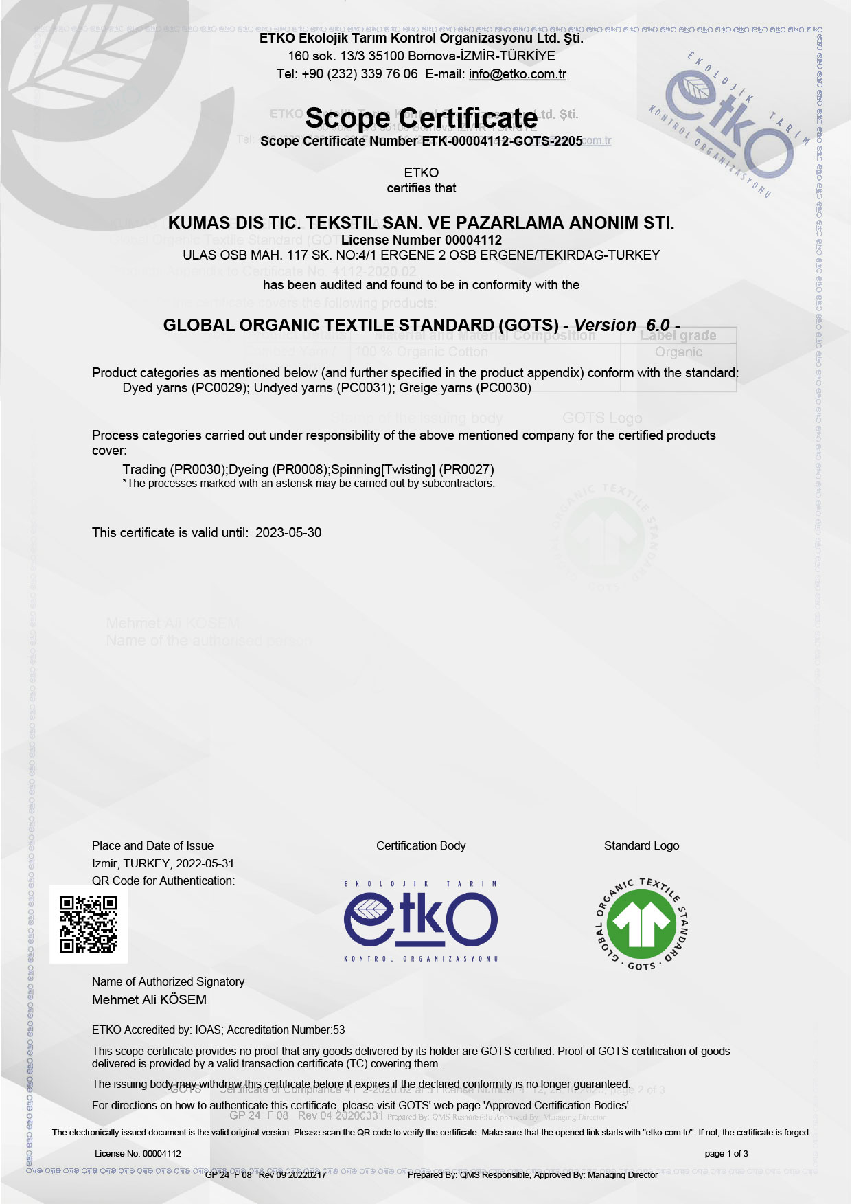 The Global Organic Textile Standard (GOTS) is recognised as the world’s leading processing standard for textiles made from organic fibres. It defines high-level environmental criteria along the entire organic textiles supply chain and requires compliance with social criteria as well.
